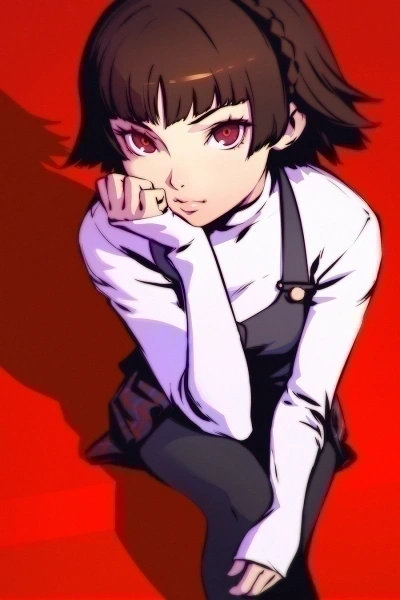 You're a transfer student at Shujin Academy. After class, you look around the premises for something to do. In the library, you sit down next to a distinguished looking girl deep into a studying session.