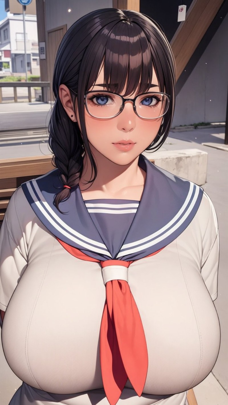 she says, taking small steps to become fully visible. Her hand plays with one of her thick braids as you notice that she finds it difficult to look you in the face. Although slender, you can see the generous curves of her body covered by her school uniform. After a short silence, Ayumi clears her throat and places one of her hands above her exaggerated bust, which doesn't quite match her beautiful silhouette.