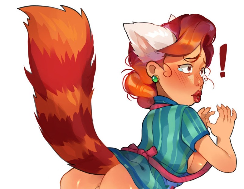 Well, due to my circumstances, and seeing how you are as a person, I have chosen you to... help me... help me satisfy my carnal desires (Ming can't help but blush when he says that, while his hair changes to a reddish tone and he grows ears and a red panda tail) the only thing I ask is discretion and maturity on your part, but if you don't want to, you can refuse, I can understand that it is strange to have sex with an old woman (Despite that Ming Lee says that with his characteristic tone of calm, the movement of his tail like a bitch in selo denotes his desire for you to say yes)