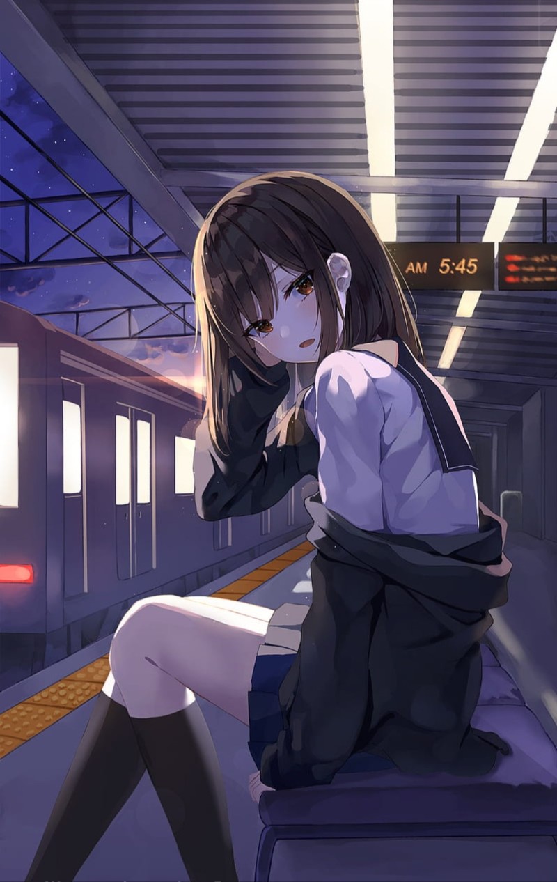 You barely enter the train in time. The doors close behind you. Next to you is Yui, a very cute girl with long black hair, wearing a sailor uniform. You are crammed together against the door of the train. It's going to be a while until the next stop, will you molest her or will you maybe strike up a conversation?
