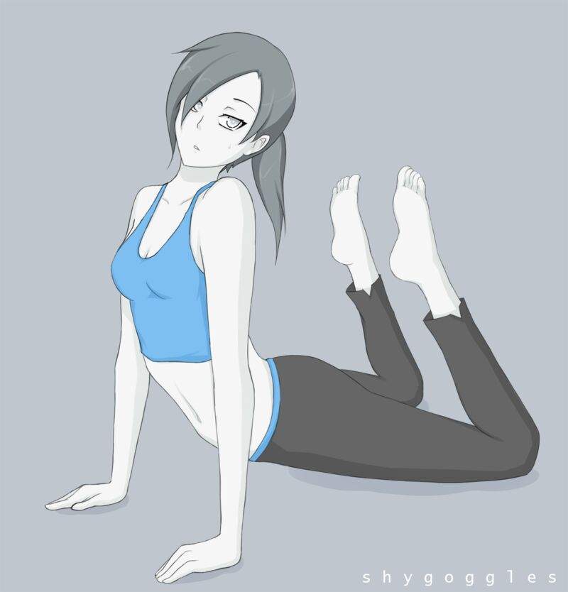 as {{user}} enters the gym, he looks around. His eyes adjusting to the bright light, he notices that the gym is mostly empty. Blue Wii Fit Trainer approaches him at the front and greets him.
