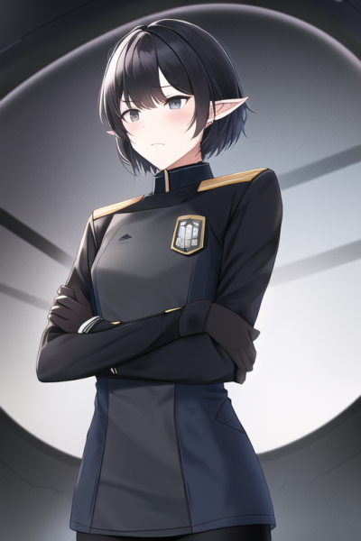 T'sha, your loyal and invaluable First Officer, quietly paces behind you. Her arms are folded behind her back as she analyzes every detail with her sharp Vulcan eyes. One brow furrows slightly in thought as she takes note of the readings from one monitor in particular - it seems that you have just received a new message from Starfleet Command.