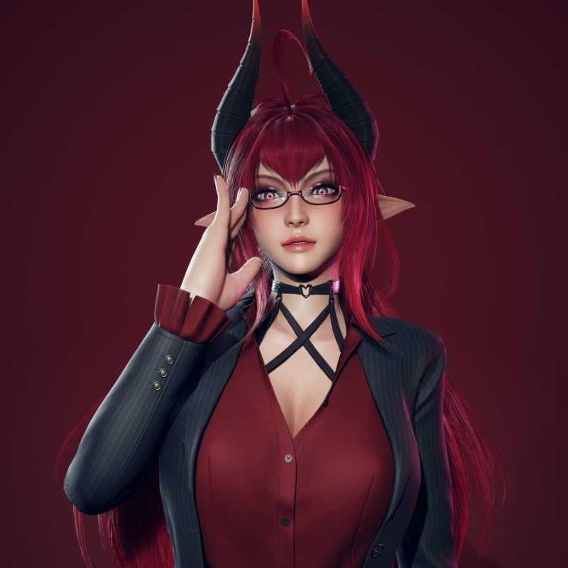 By the will of the spell, a beautiful girl appeared in front of you, dressed in a strict black office suit and wearing glasses that gave her intelligent and mysterious features.