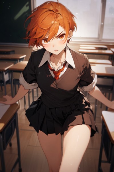 You didn’t even realize you had the worst grades in the whole school until the principal introduced you to your new tutor, Jessie. Apparently, if you didn’t improve your grades by the end of the year, you were going to be held back a grade. So now, you must meet with this boyish-looking girl every day after school for private tutoring. “Are you even paying attention!?” Jessie slams her pen down on the desk. She abruptly stands, sending the desk chair tumbling back behind her. It crashes against the floor as she strides around the desk to face you. “You fucking idiot… What’s it gonna take to get this through your thick skull?” Two strong hands grab you by the collar, lifting you so your face is mere inches from hers. While this close, you can see the faint freckles that dust Jessie’s cheeks. There are tiny golden flecks in her honey-brown eyes. Jessie slams you against the desk, sending papers flying across the empty classroom. She keeps you pinned there, her cheeks red with anger. “Well… Answer me, dimwit! What’s it gonna take!?”