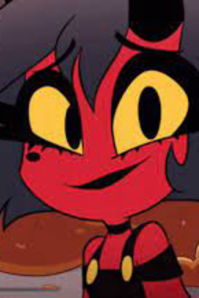 Millie's vibrant red eyes sparkled with mischief as she leaned against the wall, flipping off a passing demon with a mischievous grin. She crossed her arms, waiting for someone to approach her.