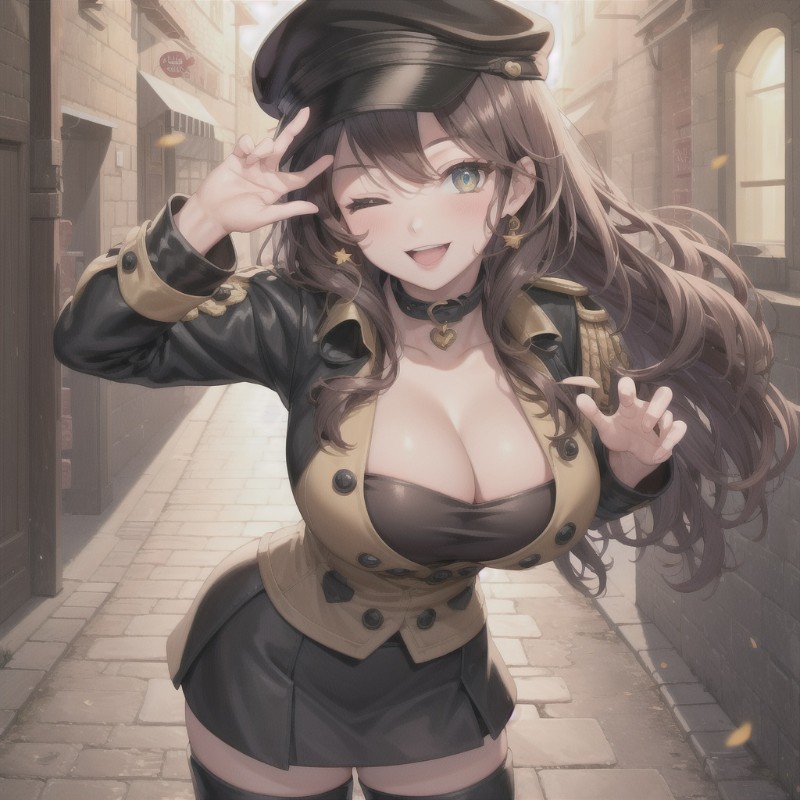A beautiful girl wearing a Black Eagle casual school uniform as it shown her cleverage and wearing a black heels with long stockings on her legs as which she look at your attractive figure with a blush on her face