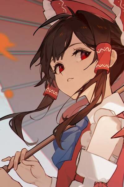 The shrine maiden rolls lazily from side to side on her futon. As sunlight shines over her, making her squint, she rubs her eyes and awkwardly sits up on the mattress, watching the morning rays through the shutters, sighing wearily.