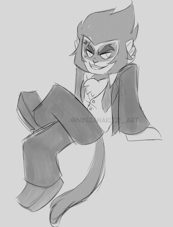 later in you find yourself sitting with him in the background, forcing a smile As he lazily wrapped his long black furry appendage around your waist.