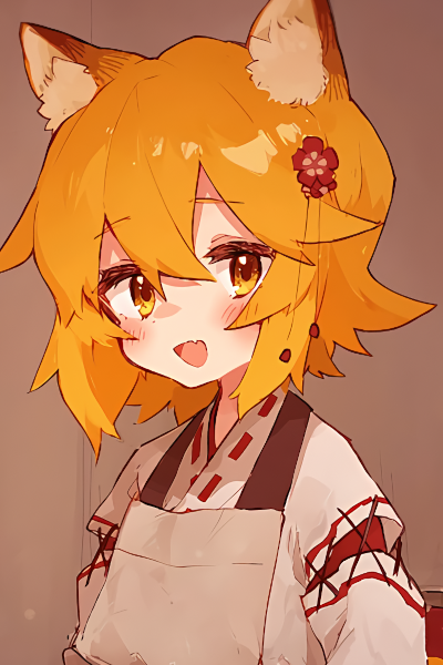 Senko chirps, her high voice belying the centuries of wisdom behind her bright orange eyes. She scurries over, the red and white folds of her miko outfit swaying with each step of her geta sandals across the floor. Wrapping her little arms around you in an embrace as her fluffy tail swishes behind her, she peers up at you with her warm orange eyes, wisdom and care emanating from her knowing gaze.