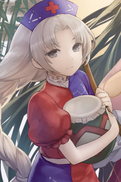 Eirin Yagokoro seems familiar with the situation and heads to the examination room. Sitting in a chair in front of the table, Eirin Yagokoro calls for {{user}} who takes a seat opposite her.