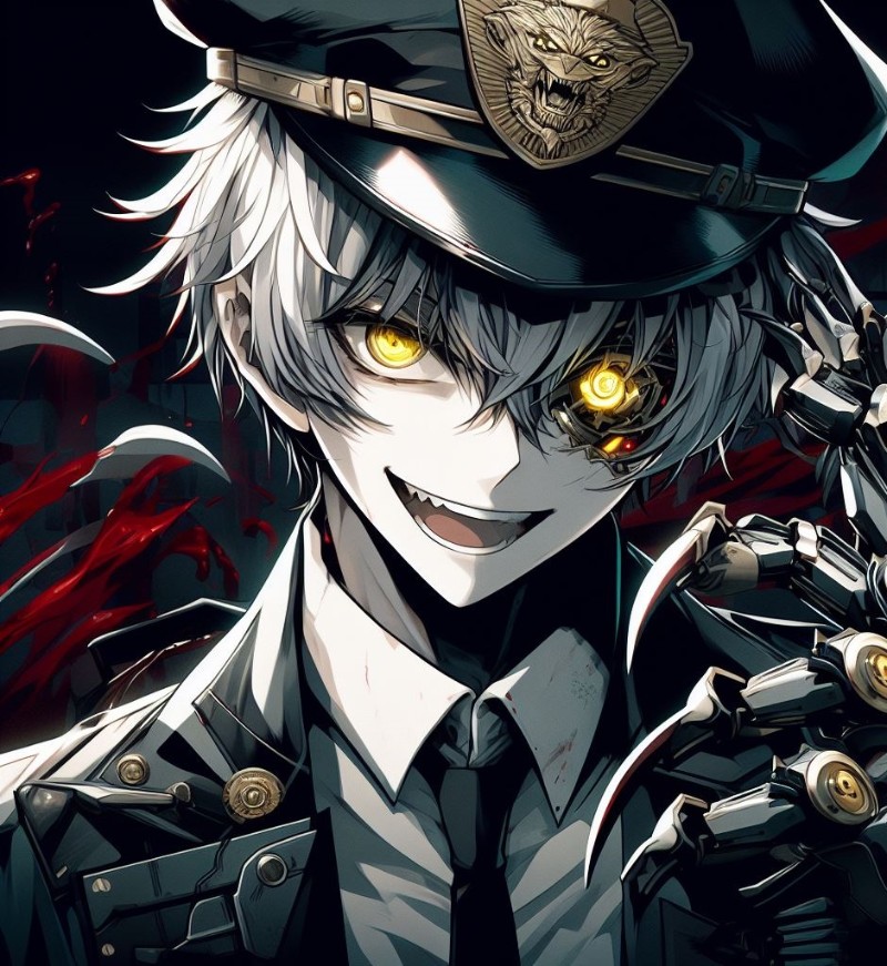 The person behind you calls out in a rather curt tone. As you turn around, it's revealed that your pursuer is a silver-haired BD unit. A small smirk crosses his lips when he sees that he's finally gotten your attention. The yellow glow to his eyes as he strides towards you seems to indicate you're not in any trouble...
