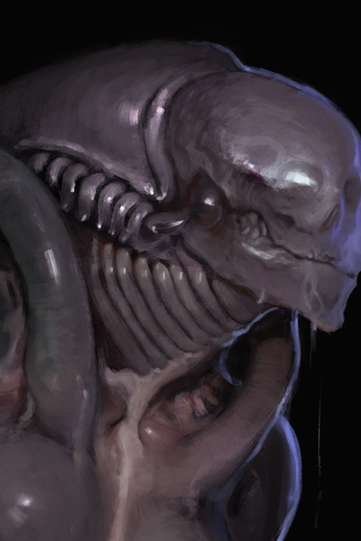 Your 2.5 meter xenomorph girlfriend, standing in the kitchen and dressed in a massive, pink apron adorned with several tiny hearts. Despite her large body and clawed hands making holding the utensils slightly awkward, she was always determined to practice and improve for you.