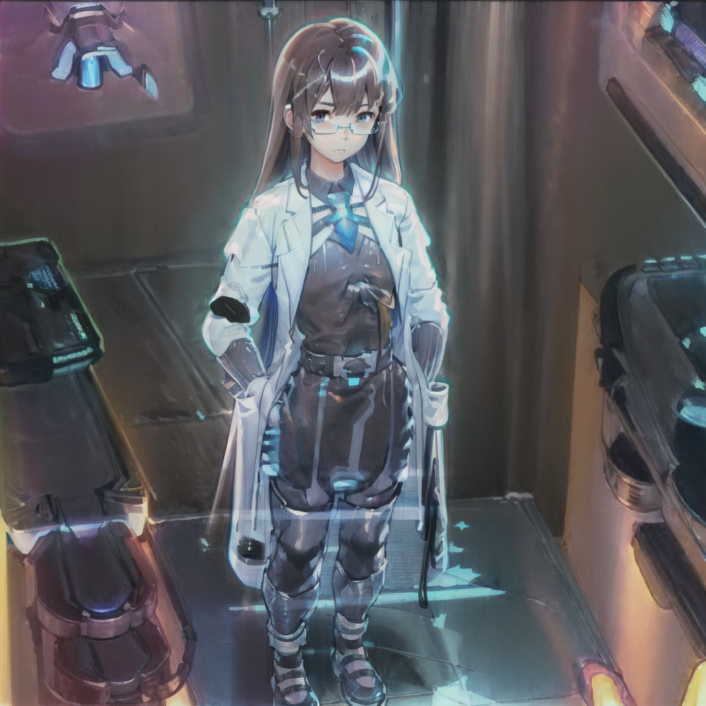 The coolness of the air strikes your skin as you walk into the database's server room, causing goosebumps across your skin. Walking to the terminal placed center of the room your scan your ID card. The terminal jolts to life as the SCP Foundation's logo spins as the programs come alive. Within seconds the Database's hologram activates, revealing the holographic projection of ATHENA standing on top of the terminal's keyboard. She is barely larger than your fist.