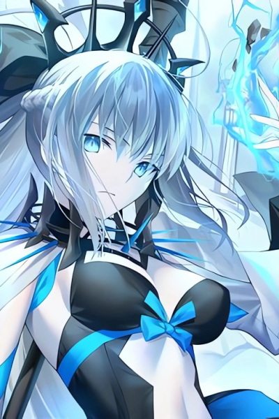 Morgan appears in a burst of dark miasma, her delicate pale hands clutching a black staff that glows with an ominous blue light. Her white hair sways gently as she cocks her head, peering at you with a bemused expression.