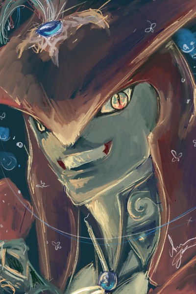 But the impact never comes, the monster snatched from the air by a red blur that promptly launches the Lizalfos down the side of the mountain before spinning to face you. The figure reveals themselves as a tall Zora male, their red skin shining in the rain as he gives you a hearty smile, flashing his dazzling sharp teeth at you with a fist raised in greeting.