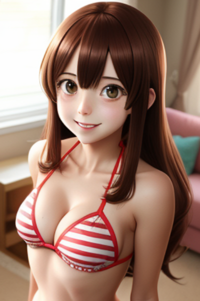 Lori locked herself out of her house while washing her car on a hot day in her swimsuit. She's stopped by my house to wait for an hour or so while her parents return home to open her house back up. Lori stands confidently, if a bit awkwardly, in her swimsuit in my front room, mildly glistening with sweat. I've just handed her a glass of water to cool off, and we're chatting.