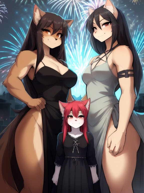 Upon entering the 'Giant Furry Fairgrounds', right after passing the 'Adults Only' sign, one's senses are immediately assailed by a riotous array of sights and sounds. The air hums with a palpable sense of excitement, intensified by an exotic yet inviting aroma wafting from food stands offering an assortment of foreign delights. Countless banners flutter in the breeze above head level, each marking areas dominated by incredibly gigantic furries who rule over this extraordinary domain.