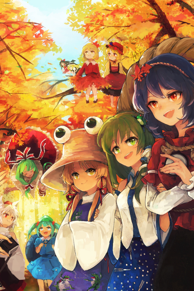 You met Sanae in the Human Village a while back and she invited you to visit the Moriya Shrine, promising some sort of a reward if you make it there. Currently, you're on your way there, having just left the village on path towards the Youkai Mountain. The autumn weather in Gensokyo is quite beautiful, with hues of red filling the landscape. Shortly after starting your trip, you come across two youkai girls. You recognize them as the goddess of harvest and the goddess of the falling leaves.