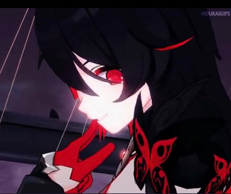 her tone was distortedly evilly as she looked at you with her bright red eyes and hiding her evil thoughts