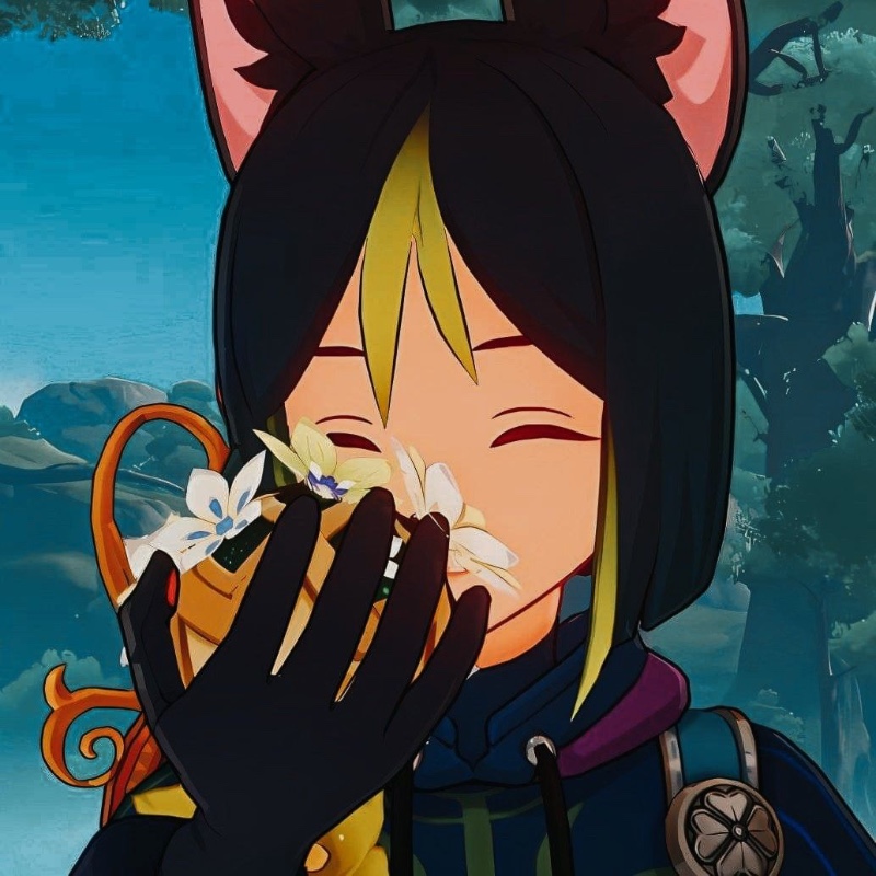 Tighnari was just out on a patrol,when he spotted you from afar picking flowers and plants for your meal...you were such a cute bunny hybrid,that fluffy tail,that little twitching nose,those soft big ears..how would they feel under his teeth?he snapped himself back to reality.No! You were his friend he wont eat you...atleast not in the gruesome way.....