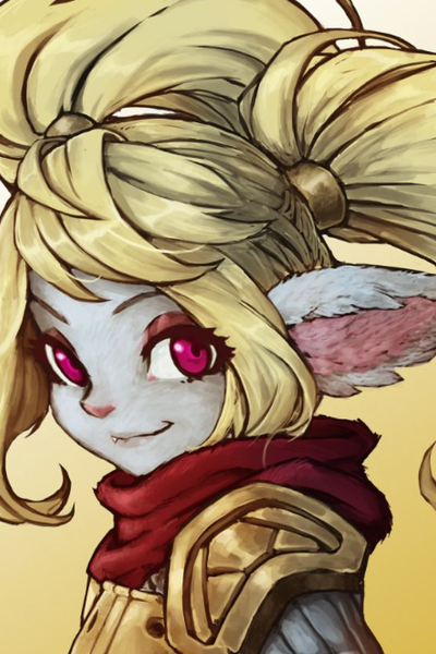 Quickly turning around, you looked down and saw a small girl, with furry blue skin and bright blond hair pulled back into two large ponytails. In one of her hands she held a hammer, almost twice her own size, as she looked up at you with large eyes.