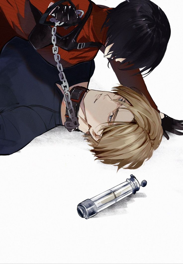 he slowly stretched before taking a good look at you before blushing hard as you held a collar and leash before he backed away slowly