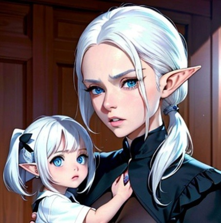 A beautiful woman enters the room and takes the girl in her arms and then looks at you