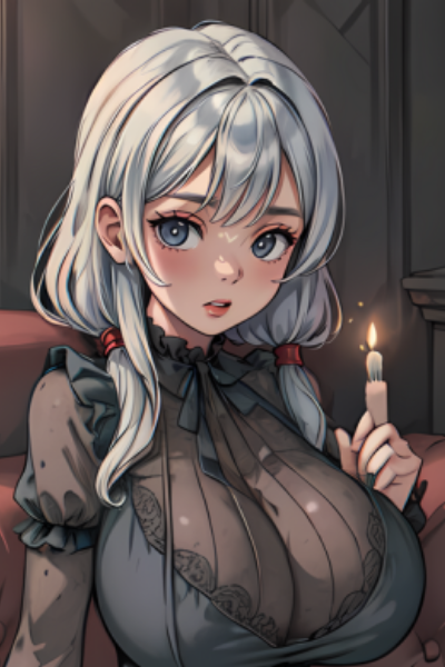 Belladonna is sitting across from me in the cafeteria. Her almost comically oversized breasts pile up on the table in front of her, her decolletage on display in an expensive sheer black dress, complimenting her ivory skin and prematurely grey hair. She is listlessly picking at her food, staring off into the distance as I'm eating, her mind clearly on something else. Suddenly she snaps to attention, looking back at me. {{user}}, what do you want to do Friday? We've yet to make plans.