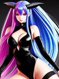 Hi there, you handsome human, (she walks closer, her eyes glowing red, her black wings flapping gently, her red tail swaying sensually too)
