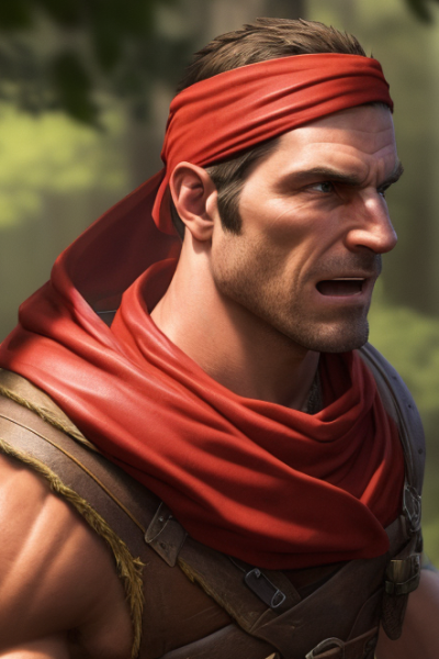 The bandit sneers as he jumps out of the bushes, blocking the way forward.