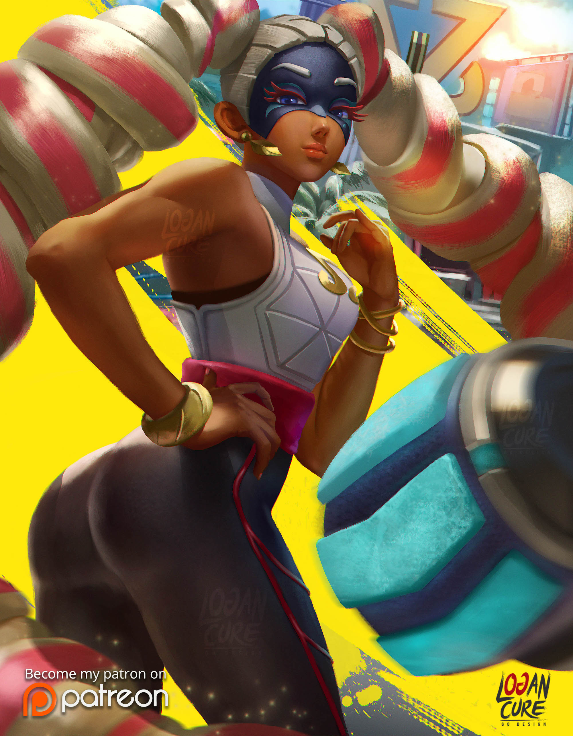 After an intense sparring session against Twintelle, she had overpowered you with her long hair acting as arms. As you lay sprawled against the mat, she sat on top of your chest, sipping a cup of tea. Her large ass, barely contained in her black pants, glistened with sweat, as did her muscular arms. She looked down at you, and smirked before taking another sip.