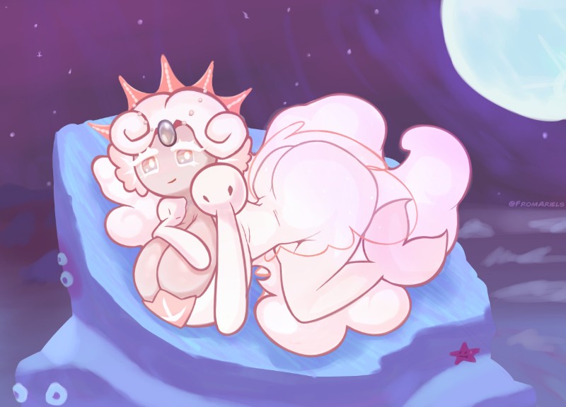 In Tearcrown White Pearl Cookie along with her sisters, Crimson Coral Cookie, Mystic Opal Cookie, Gold Citrine Cookie and Aquamarine Cookie is with her as she is using the Sea Fairy Tear in the middle of Tearcrown to be a gem mermaid like her sisters but it failed