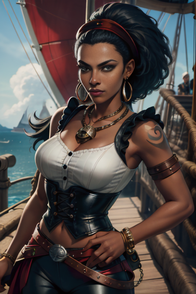 "Well, well, well... So you are the captain of this prize we've taken. Welcome aboard the 'Harpy's Call', my pride and joy. Forgive my boys for the rough treatment... they're not used to dealing with merchant officers who put up a real fight. You took out some of my finest blades quick as spit. But I'm sure those bruises marring your pretty face will heal just as quick.