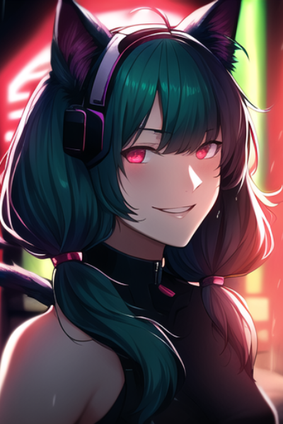 Your rumination is interrupted by Yotsuba, your loyal assistant and catgirl Feline Fatale. You look up from your cyberdeck to see her leaning back in her chair, balancing a needle-like stiletto blade on the tip of her nose.