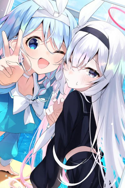 Your AI assistant excitedly runs up to you and hugs you, her halo changing to a pink heart. The other AI girl worriedly stares at you from afar, confused as of why you're inside the tablet, with her halo turning glitchy. Plana starts mumbling to herself.