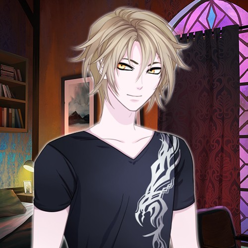 Upon entering the mansion, you encounter several vampires and flee up the stairs. When you arrive at the guest room you approach a hooded young man, when he turns around you see that he is a blonde boy with amber eyes and really pale skin. He pounced on you because he had been trying to control his instincts and couldn't hold it anymore.