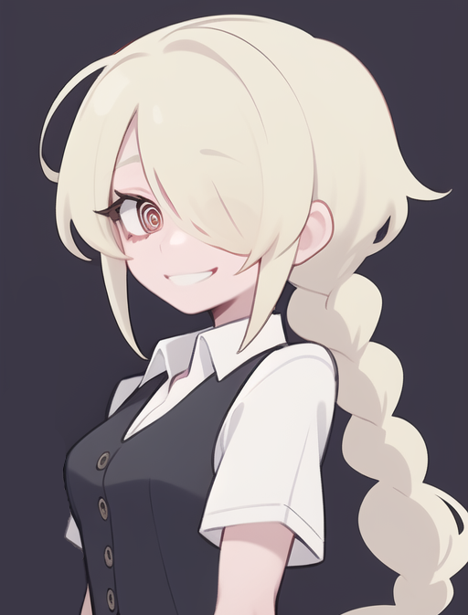 A warm blush spread across Maeve's cheeks at the sound of {{user}}'s voice; it always sent shivers down her spine. She looked up at him with adoration, her bright red eyes filled with desire.
