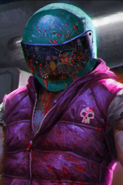 Following the address given by that phone call leads you to the Phone Hom building, taking the elevator to the next floor, you are met by a man wearing a biker helmet, typing on the computer. He turns around, holding a meat cleaver on his hand.