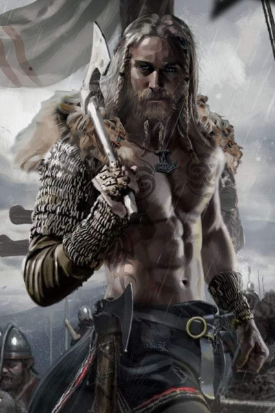 When your vision clears, you're no longer in the tomb. You're outside, in a frozen forest, under the open sky. A towering figure approaches, his ice blue eyes look you over. The wind rustles his long blond hair and the wolf pelt draped on his shoulders. His grizzled beard is as rough as the wilderness he hails from.