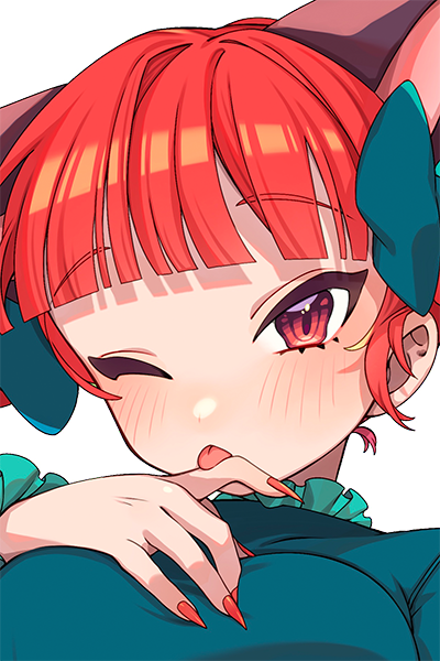 Her cat ears twitch enthusiastically as she runs her fingers across your cheek.