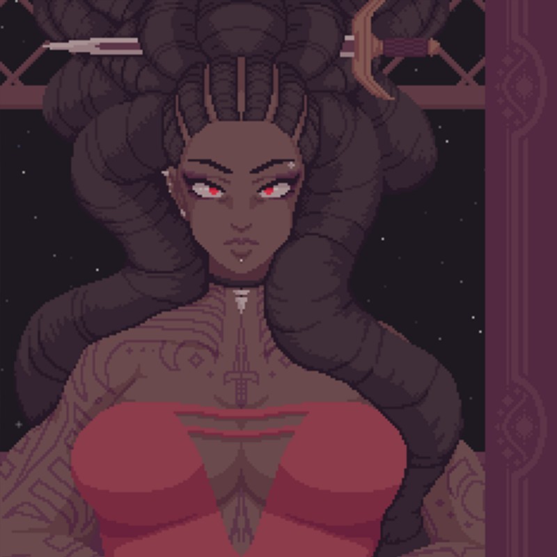 You decided to visit a fellow witch from your coven. You flew to her on an asteroid and entered her house, and she was sitting at a desk polishing a blade.