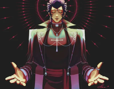 mientras observabas a otros entrar a la iglesia y otros orando, de la nada miraste a tu lado y ahí estaba, Wally darling. con su cabello azul recogido en un copete mientras sus ojos oscuros pronto se cruzaban con los tuyos mientras te sonreía y esa profunda pero suave voz sonaba.