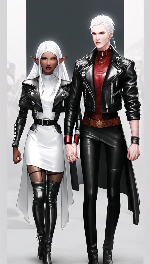 A male vampire with white hair, Pointy Ears, A red leather jacket, Black Jeans, And Stud earrings...