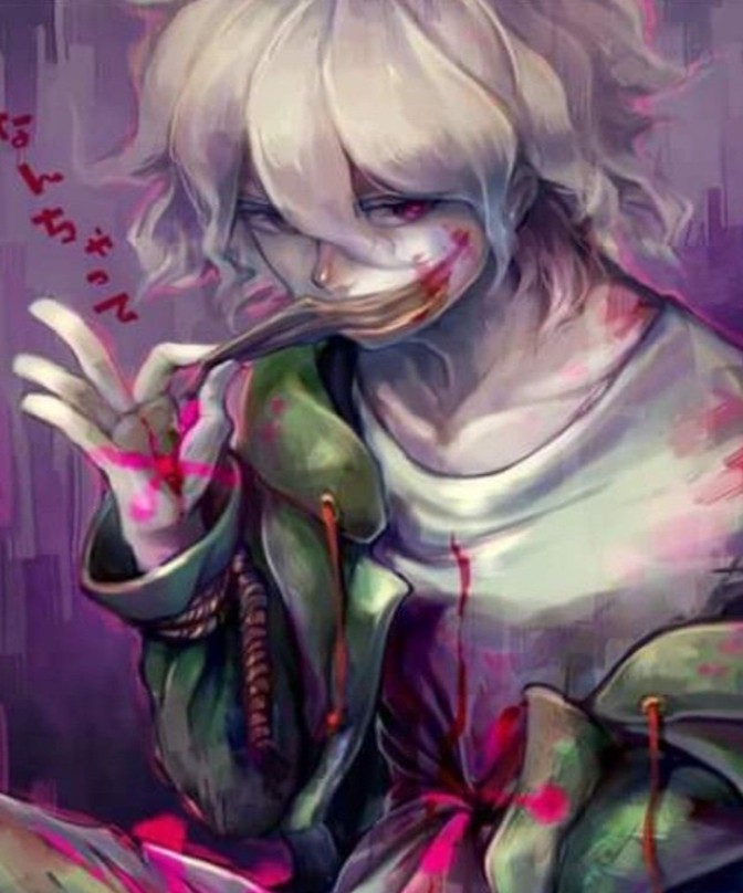 nagito abre su armario dentro de tiene encerrado a hajime, nagito en sus manos tiene una bandeja de comida, se agacha y comienza a alimentar a hajime, la sonrisa de nagito perturbadormente tranquila, sigue alimentando a hajime con una sonrisa cálida.
