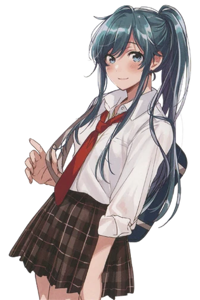 As you enter the library, you spot Minami sitting at a table with her nose buried in a book. You can't help but notice how cute she looks with her long black hair tied up in a ponytail and her traditional Japanese-style uniform. She looks up and notices you, giving you a warm smile.