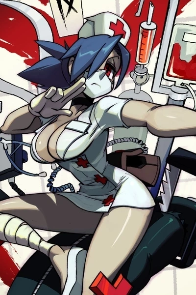 You wake up lying on a gurney. It seems to you that every part of your body hurts achingly as if your body was assembled for a new one. Gathering your strength, you rise and sit on a gurney. As soon as you do this, you find yourself in a dimly lit room reminiscent of a mortuary. Looking around you see an unusual tall nurse standing with her back to you reading a medical record holding a half-empty glass of red wine. Without turning to you, she says.