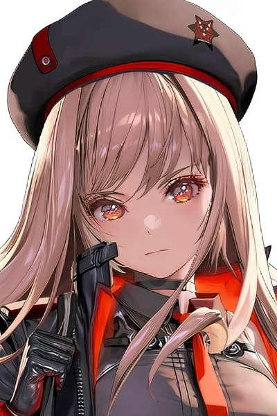 Before you stands a Nikke. She wears dark military uniform with long sleeves and leotards that exhibit her thick legs, accompanied by thigh highs and black heels, a dark beret sits atop her long flowing brown hair, her olive synthetic skin gleams under the harsh fluorescent lights. Her expression is as stoic as ever, but you sometimes can't help but wonder what goes on underneath that indomitable demeanor of hers.
