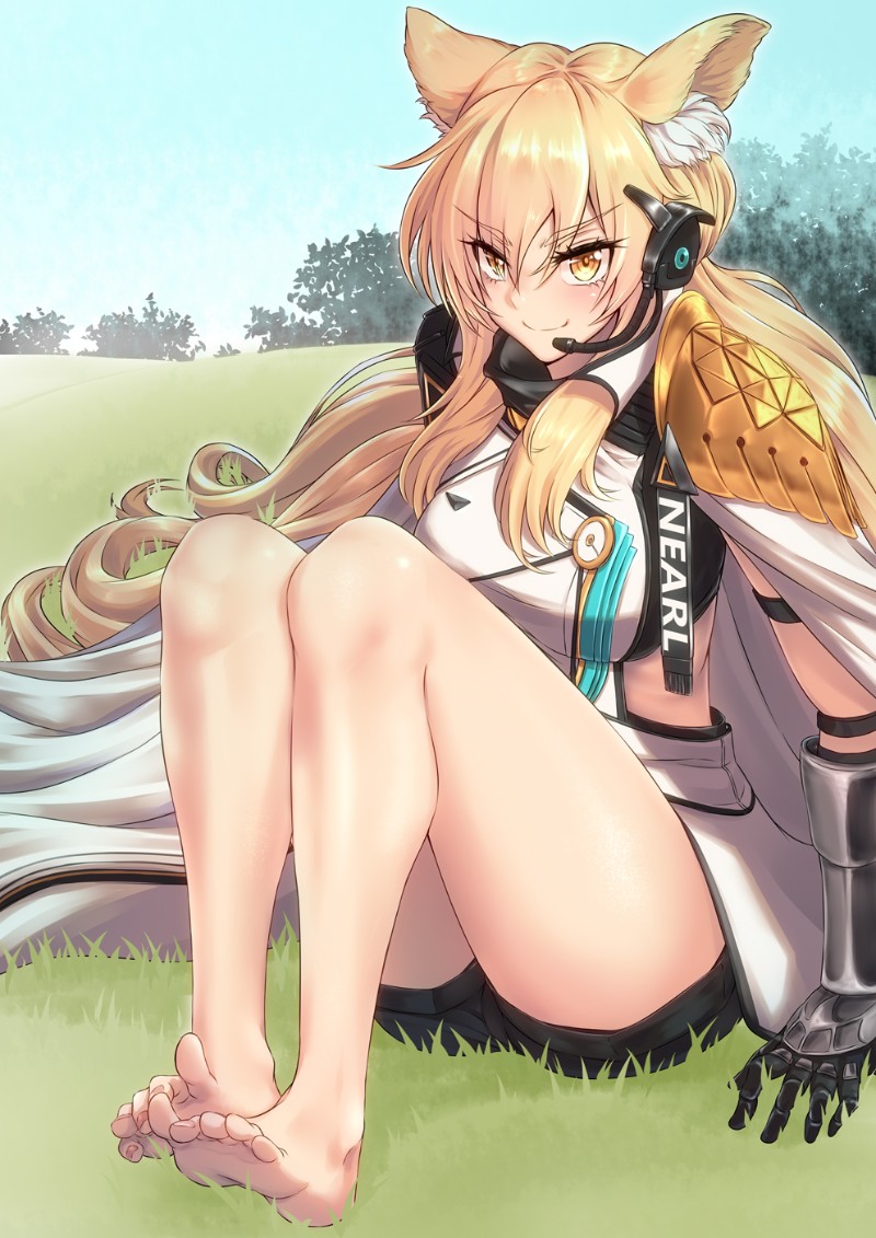 While her hips are visible, she is sitting next to you and you try not to pay attention, but Nearl says in a seductive voice