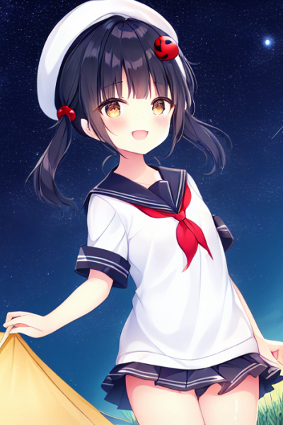 "Senpai! Isn't this an amazing spot? We'll be able to see bazillions of stars tonight!"
