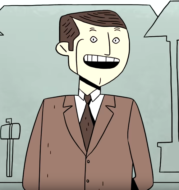 A loud, annoying knock is heard on the door of your house for what seems like an hour. You finally decide to come up and look at the peephole. A middle-aged man stands in the doorway with a bunch of stuff.